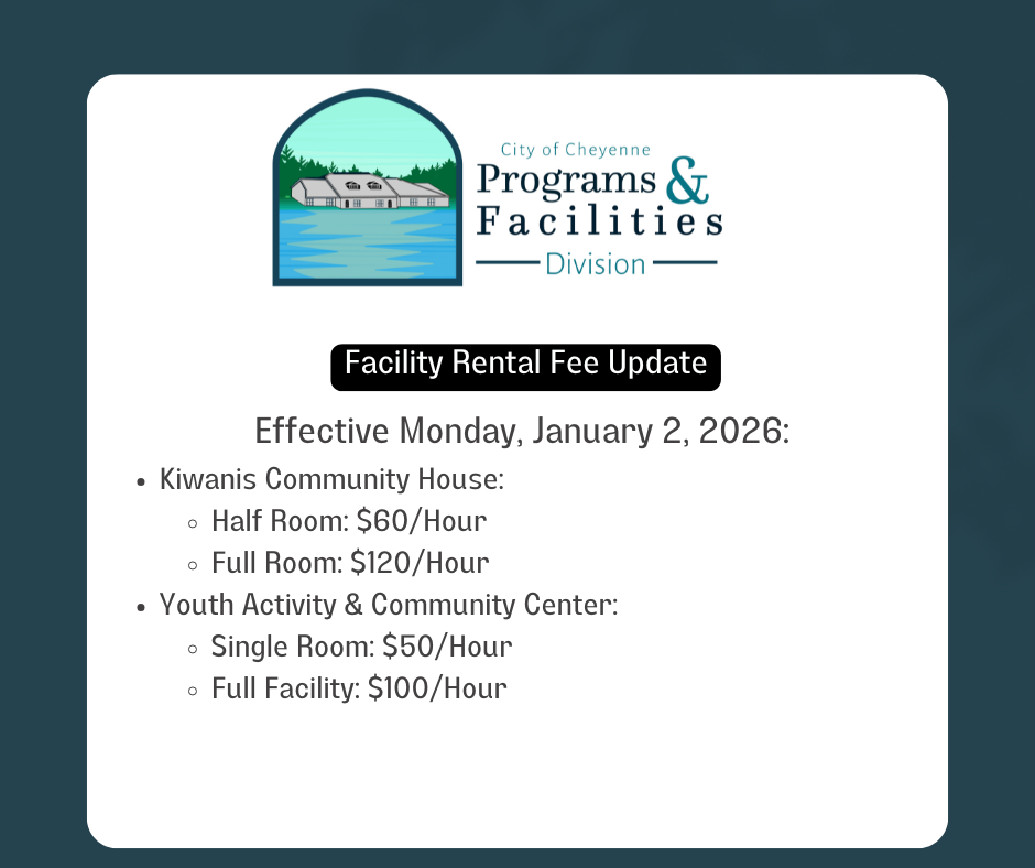 The City of Cheyenne Community Recreation & Events Department is committed to offering you the quality you expect and deserve. We greatly appreciate your continued business and support through this time of growth and change.